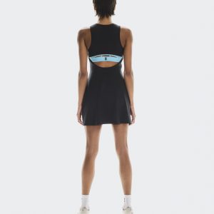 Care Instructions Cold gentle machine wash Do not bleach Do not dry clean Do not iron May be tumble dried cold Materials & Transparency Materials Main Fabric: Polyester (recycled) 71%, Elastane 29%. Inner brief: Polyester (recycled) 88%, Elastane 12%. Switch up your studio fit with this soft, sporty dress. With a cut-out back, secure built-in…