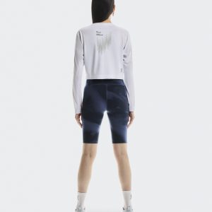 Care Instructions Cold gentle machine wash Do not bleach Do not dry clean Do not iron May be tumble dried cold Materials & Transparency Materials Main Fabric: Polyester (recycled) 71%, Elastane 29%. Seriously soft and versatile. These biker-style short tights with cloud-inspired print take you from street to studio.