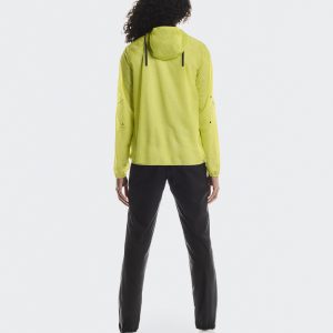 Care Instructions Cold machine wash Cool iron Do not bleach Do not dry clean May be tumble dried cold Materials & Transparency Materials Main Fabric: Polyamide 100%. Pocketing: Polyamide (recycled) 82%, Elastane 18%. With GuardTec™ lightweight, breathable, waterproof protection. This packable trail running jacket is ready for any ultra.