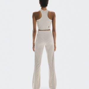 Care Instructions Cold machine wash Cool iron Do not bleach Do not dry clean Do not tumble dry Materials & Transparency Materials Main Fabric: Polyester (recycled) 87%, Elastane 13%. Add some flare to your everyday with these two-tone, ribbed pants. Wear them out to lunch or to and from the studio.