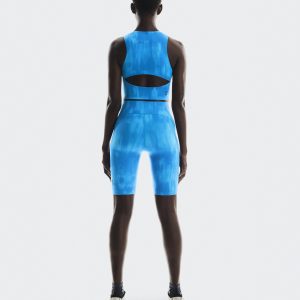 Care Instructions Cold machine wash Do not bleach Do not dry clean Do not iron May be tumble dried cold Materials & Transparency Materials Main Fabric: Polyester (recycled) 71%, Elastane 29%. Move freely in flexible biker shorts with a striking tie-dye print and smart pockets for your essentials.