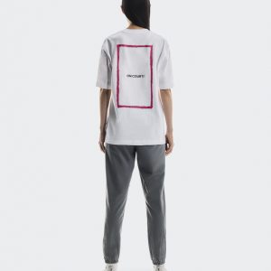Materials & Transparency Materials Main Fabric: 100% Organic Cotton Rib: 95% Organic Cotton, 5% Elastane Your go-to t-shirt for on and off-court comfort. Soft to the touch with a tennis-inspired graphic on the back.