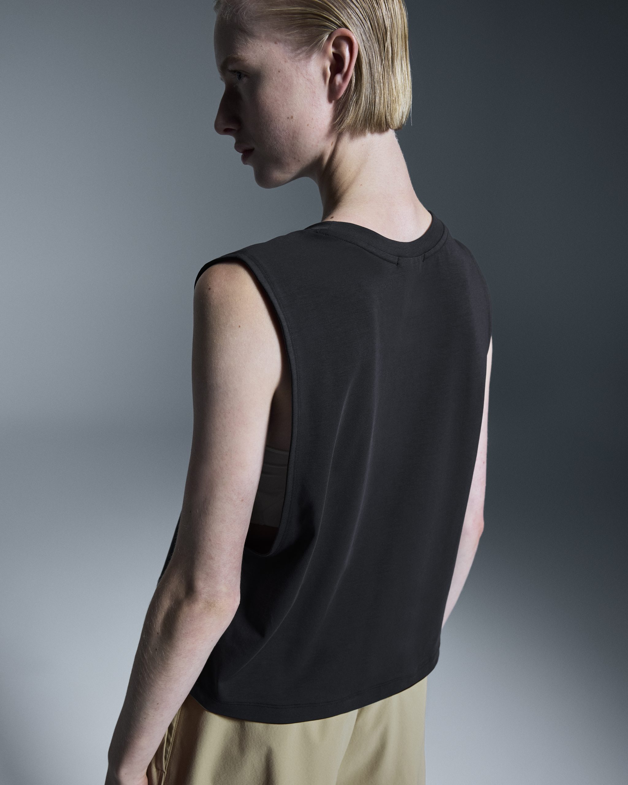 The versatile workout top constructed with both sweat-wicking and soft cotton fabric so you’ll be ready for anything.
