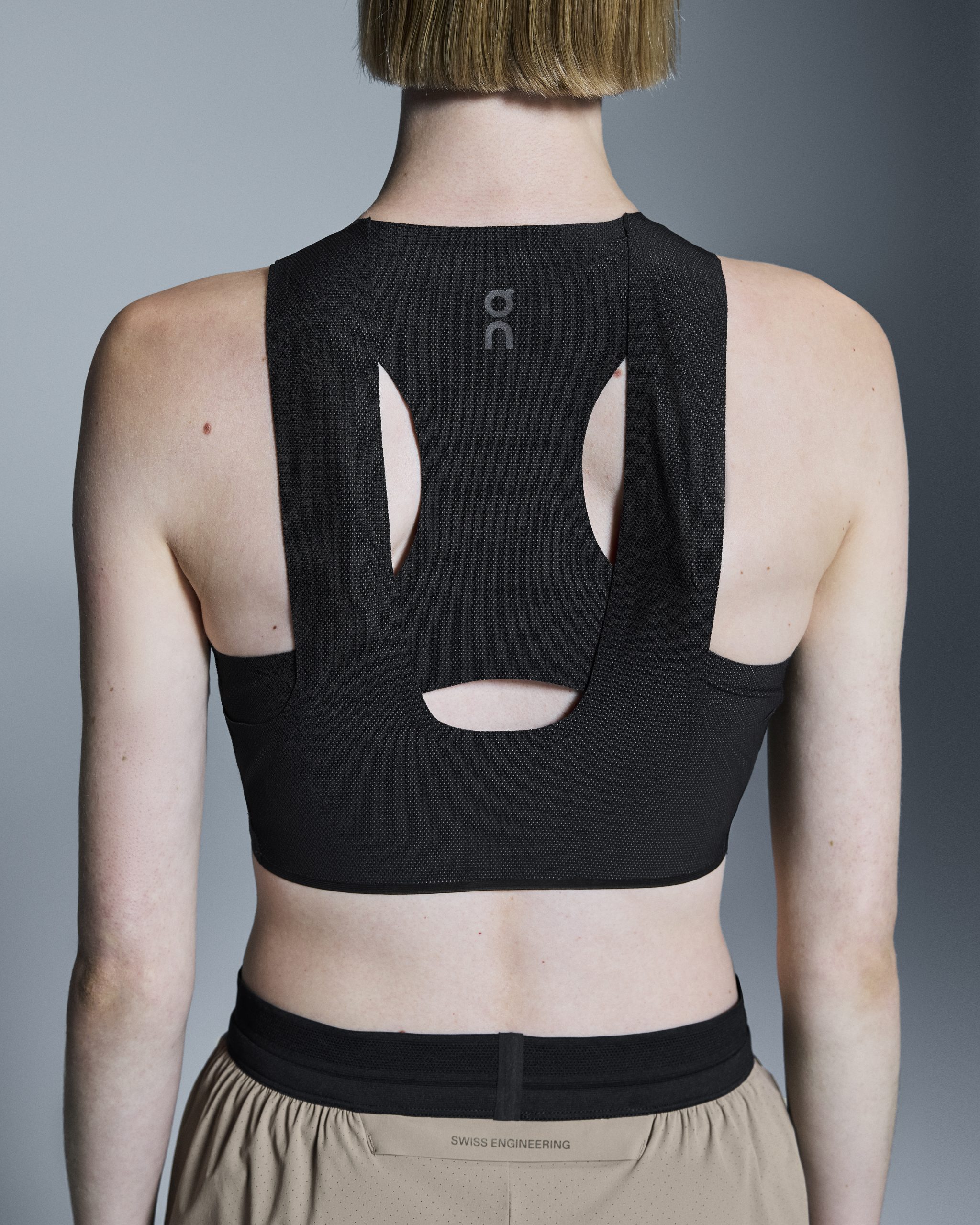 Breathable and soft crop top for race day, with a hybrid racerback construction for a stable and secure fit.