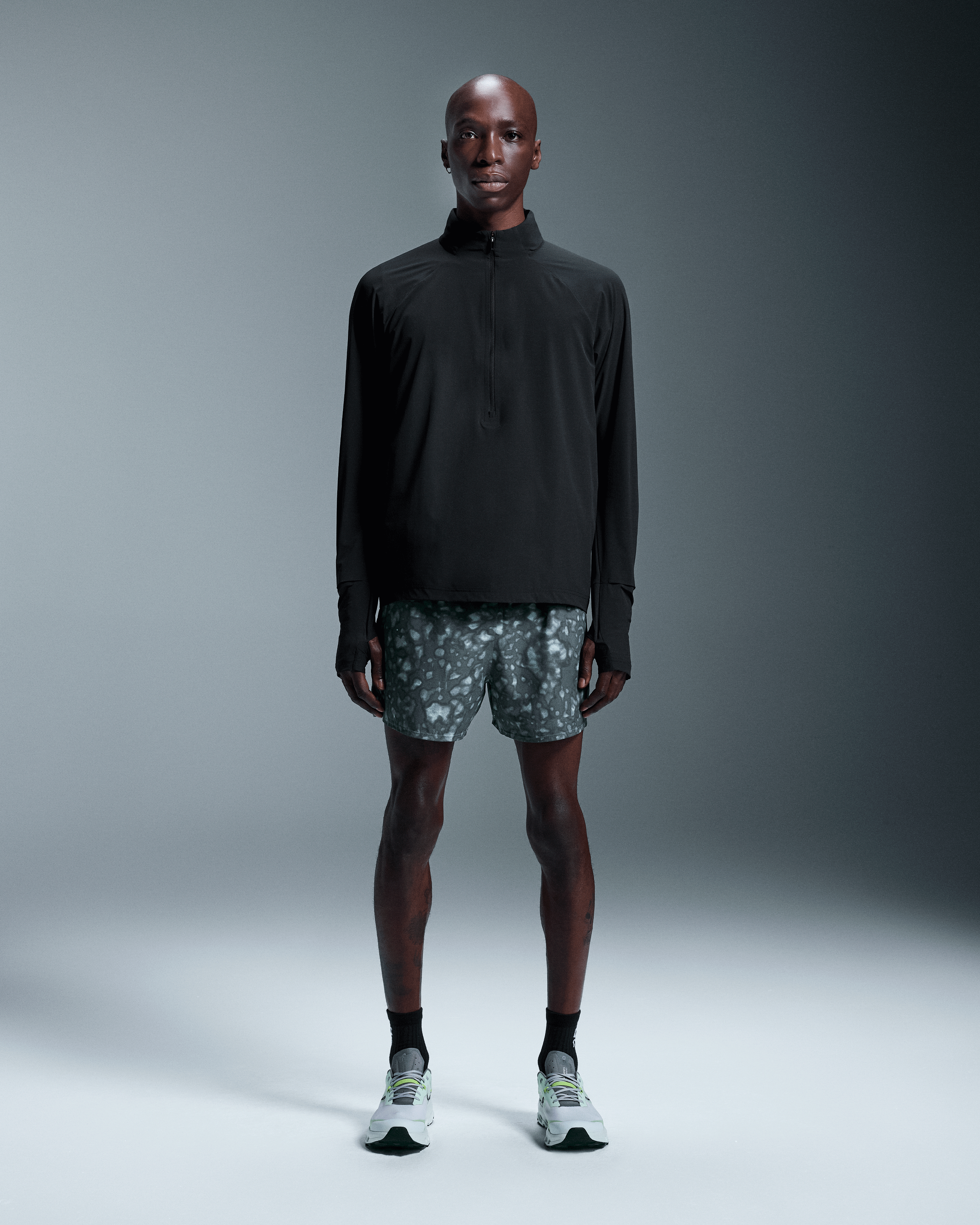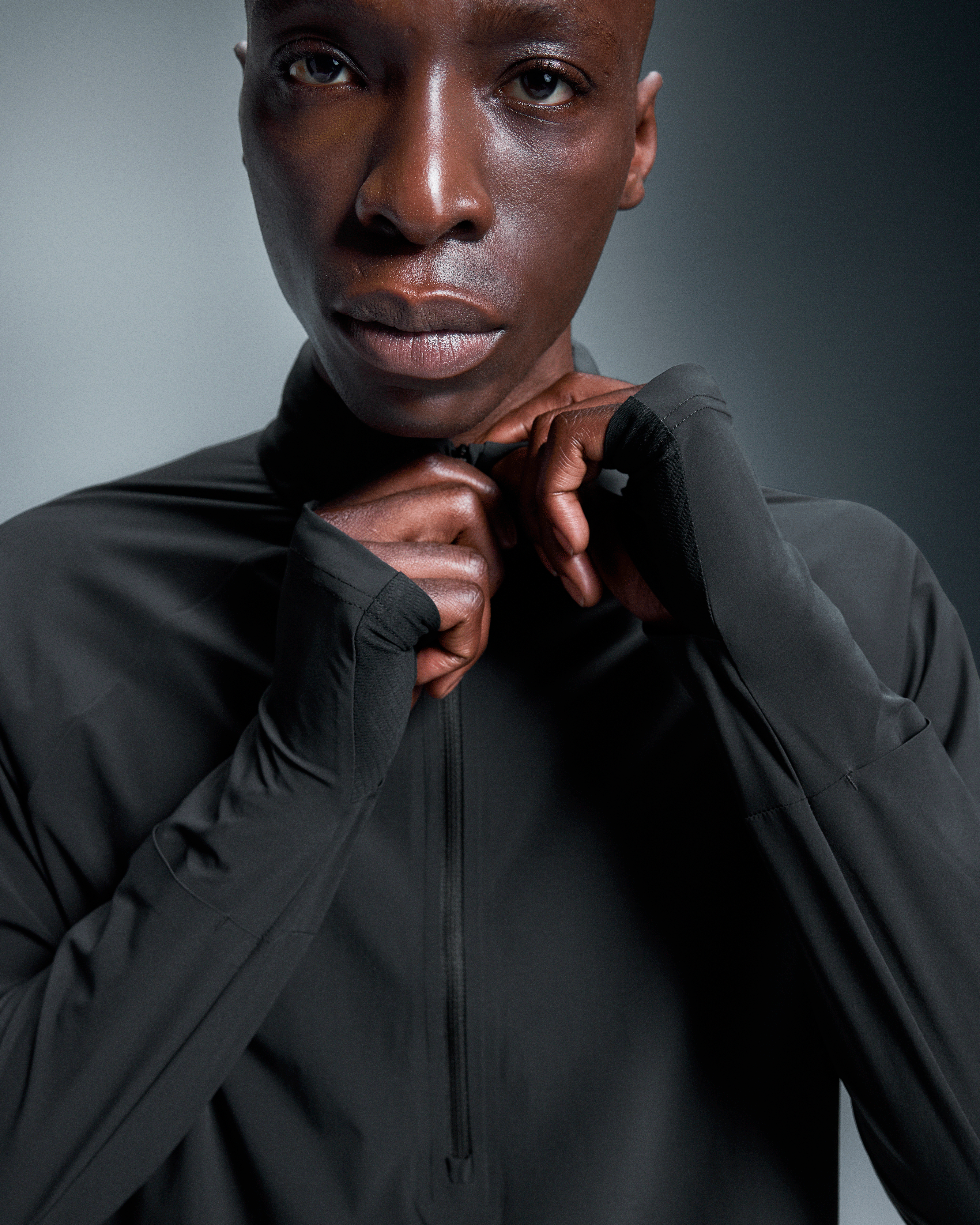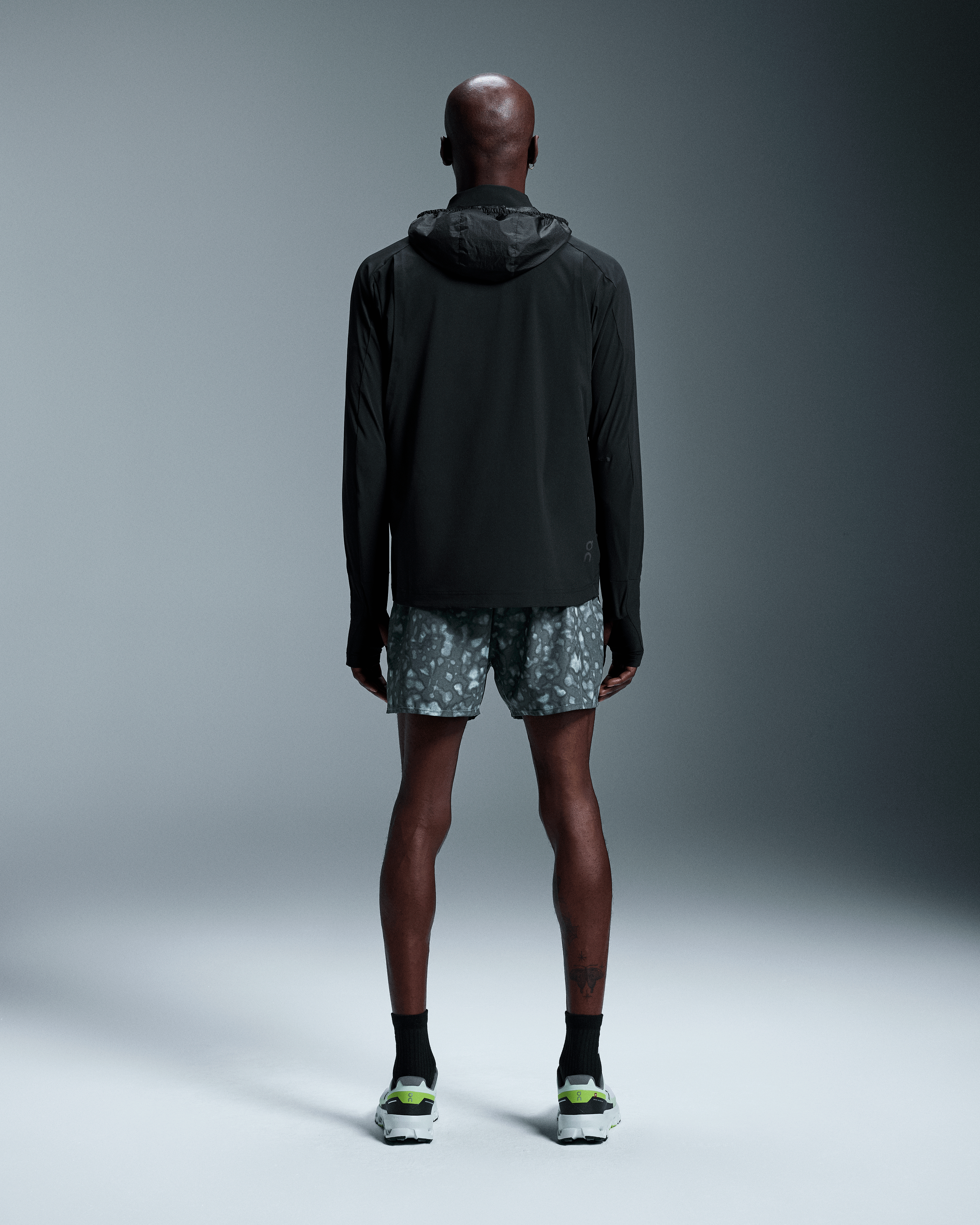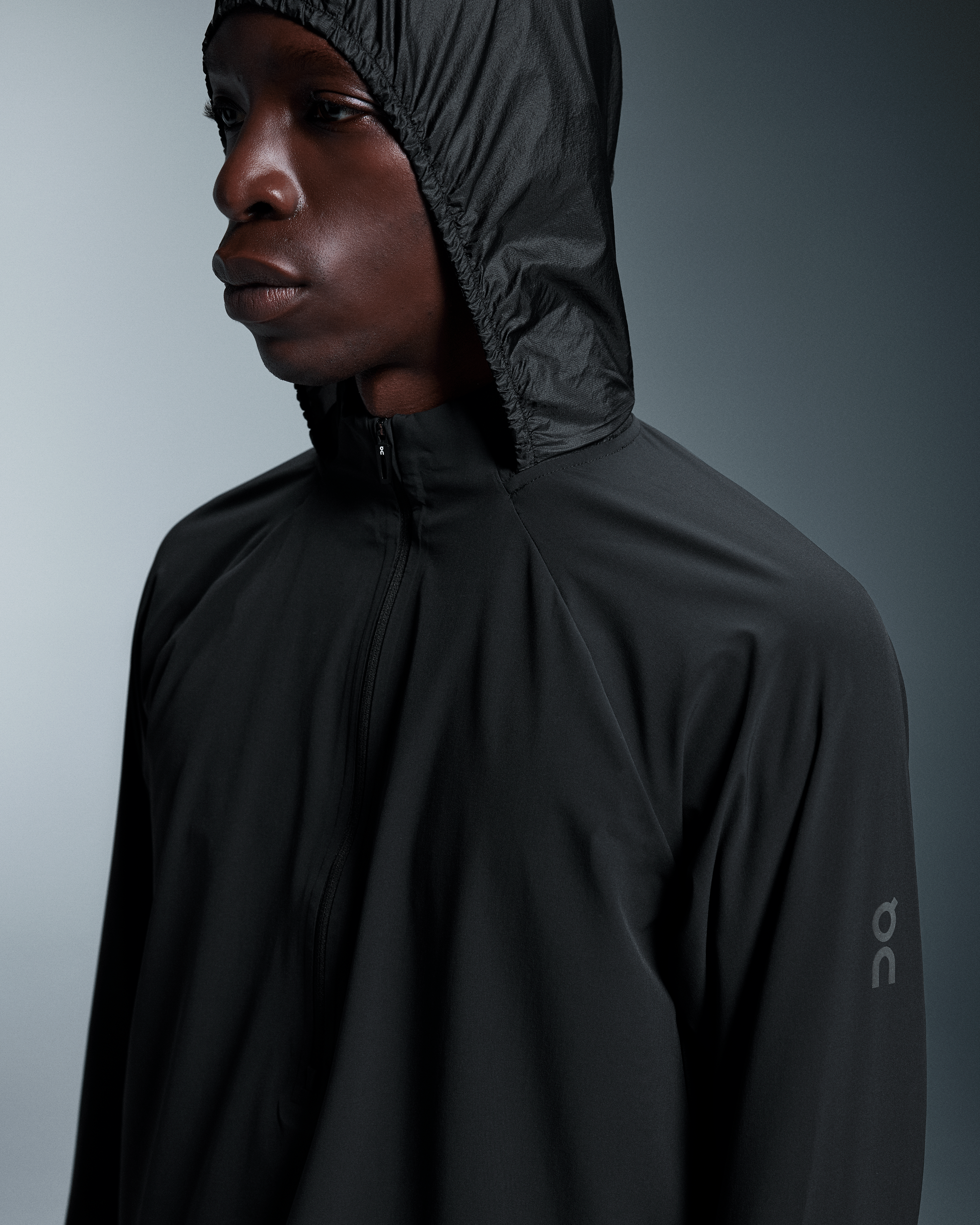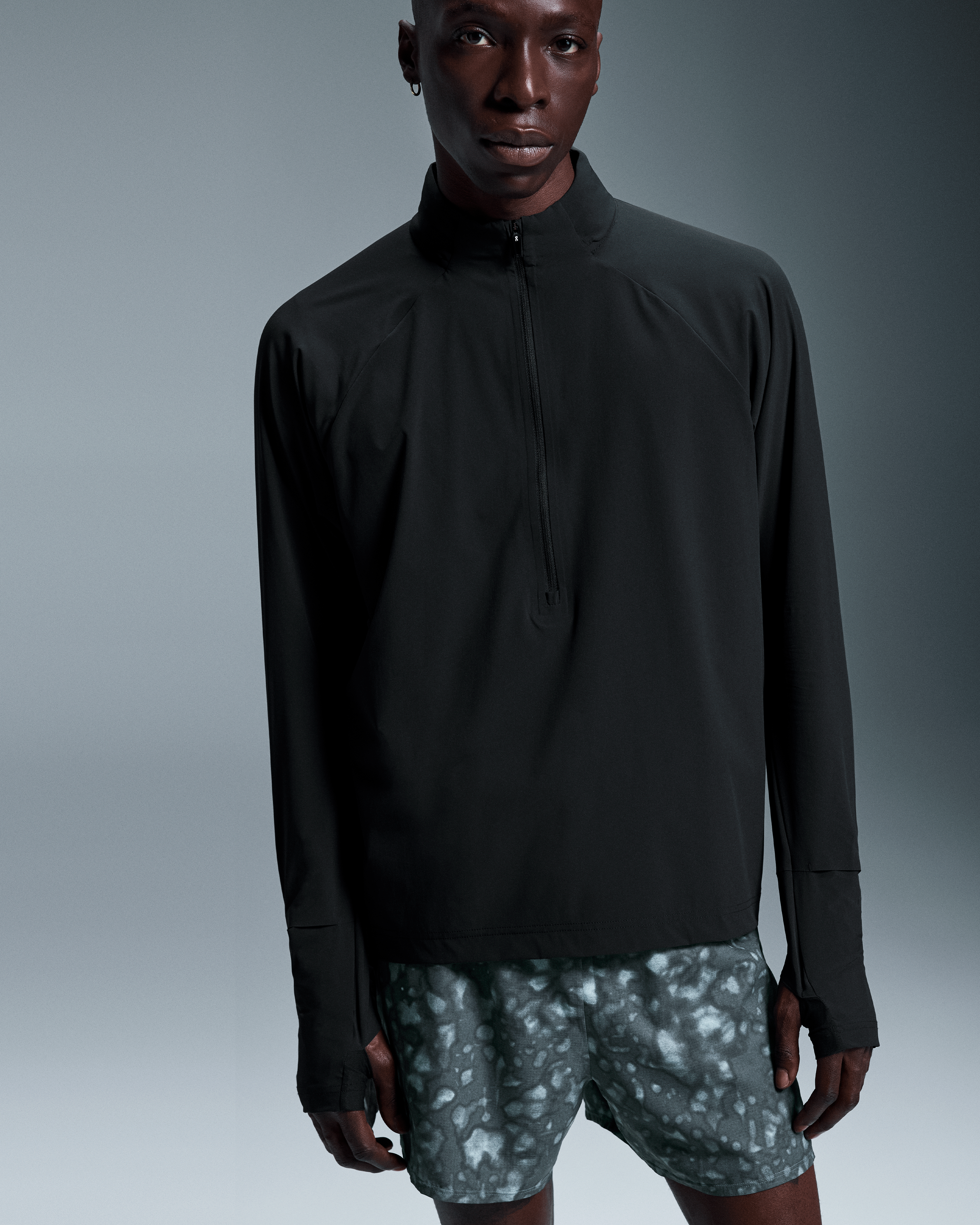 The light and packable midlayer made for trail running, complete with optional hood and watch window.