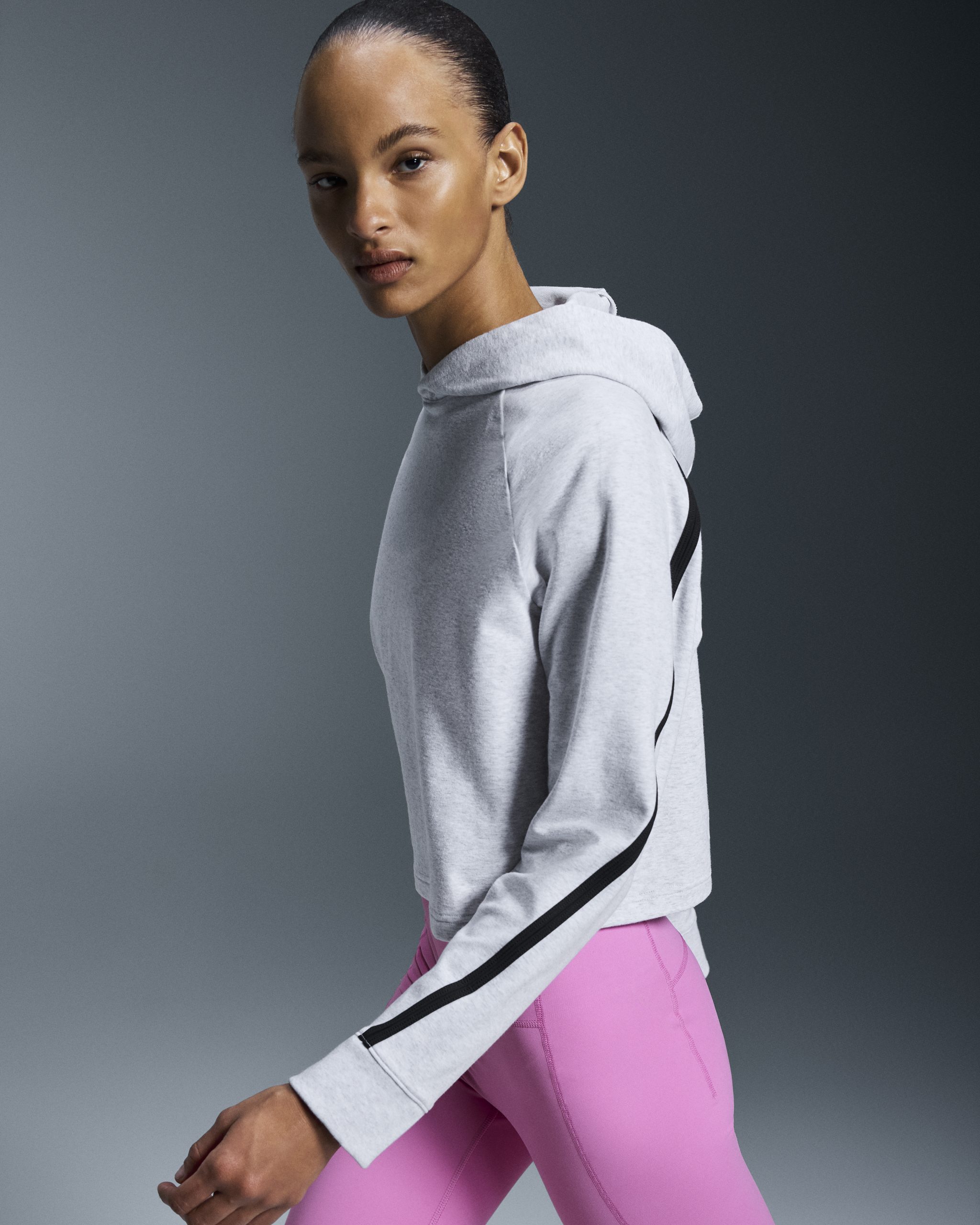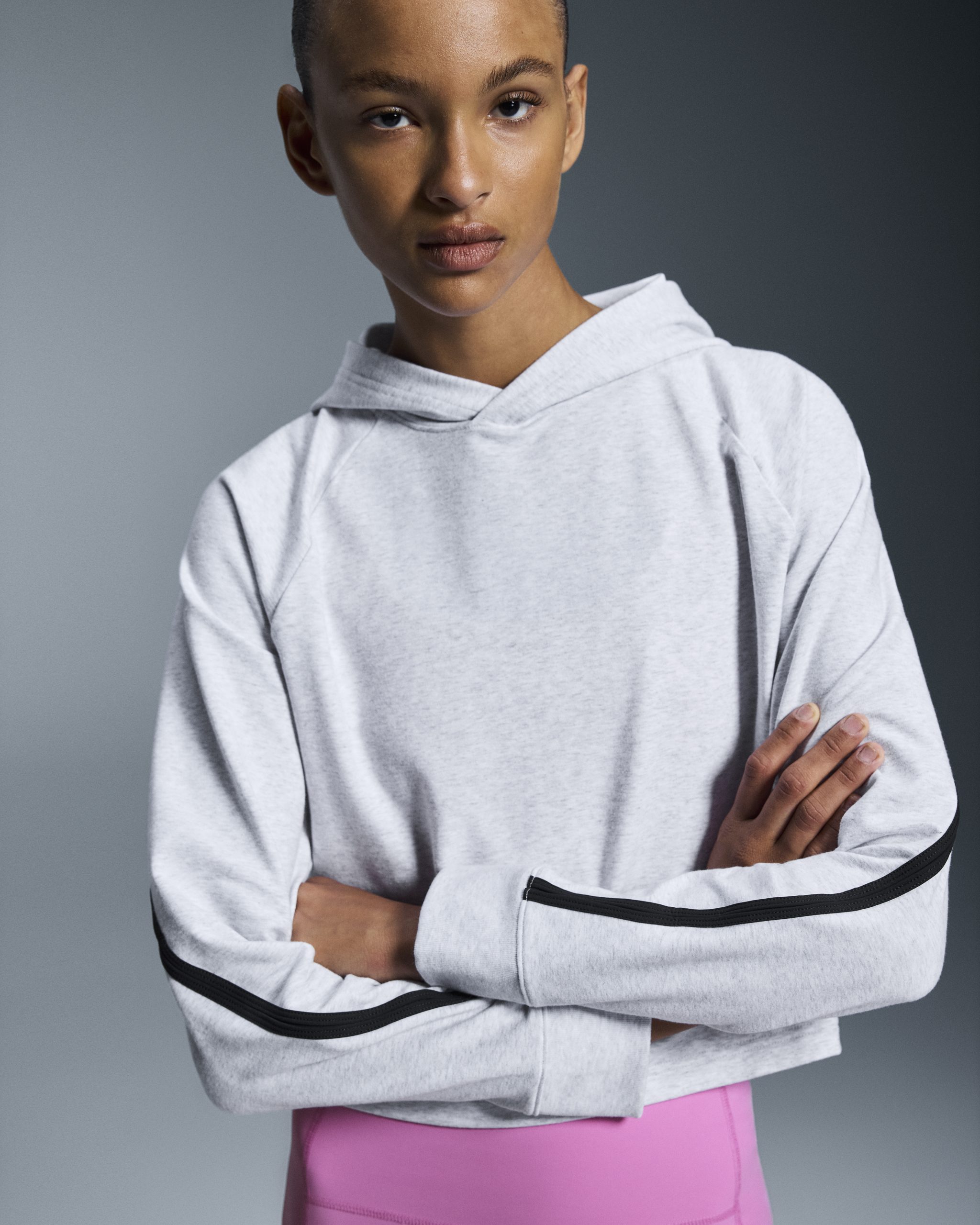 This cropped, relaxed-fit hoodie is ready to move. Athletic aesthetic, ideal for low-intensity workouts and daily wear.