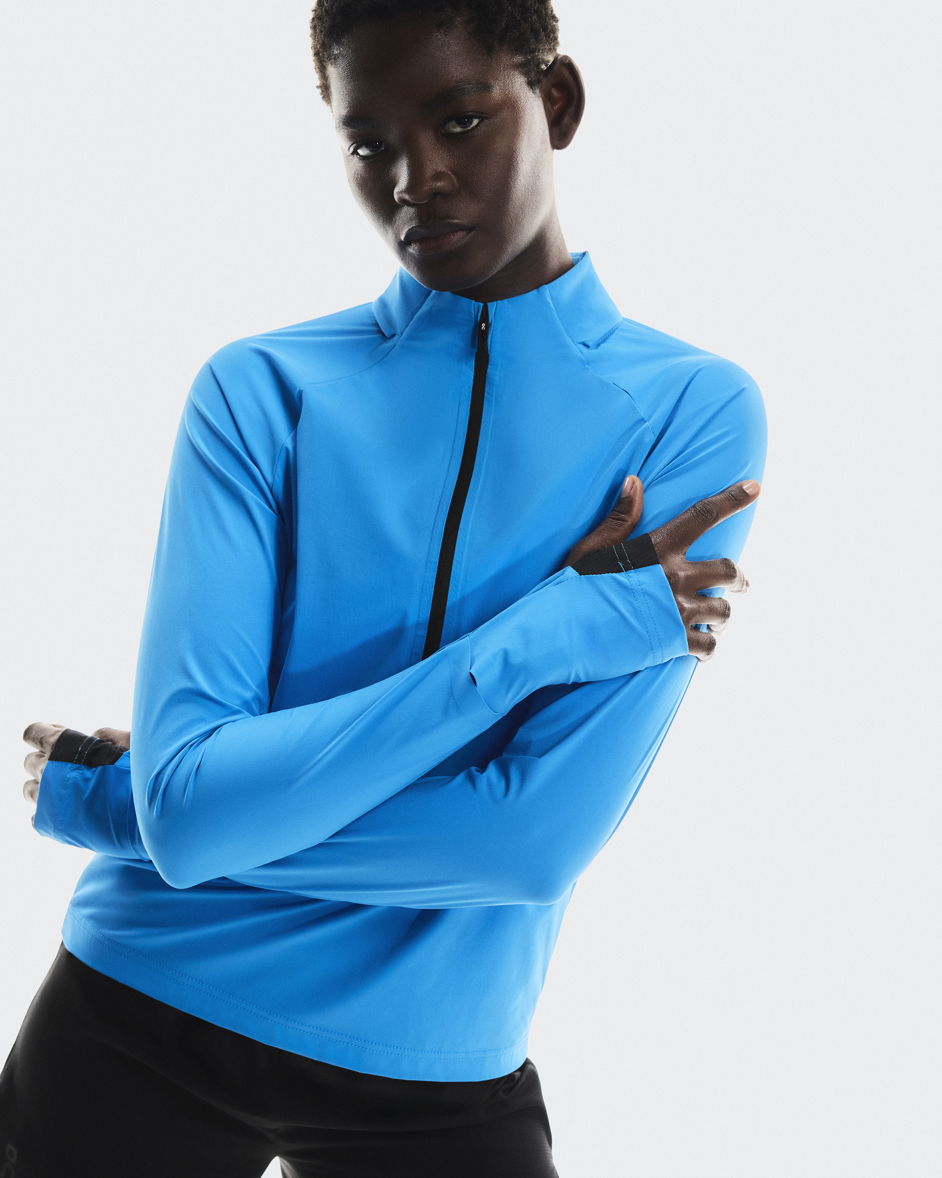 The light and packable midlayer made for trail running, complete with optional hood and watch window.